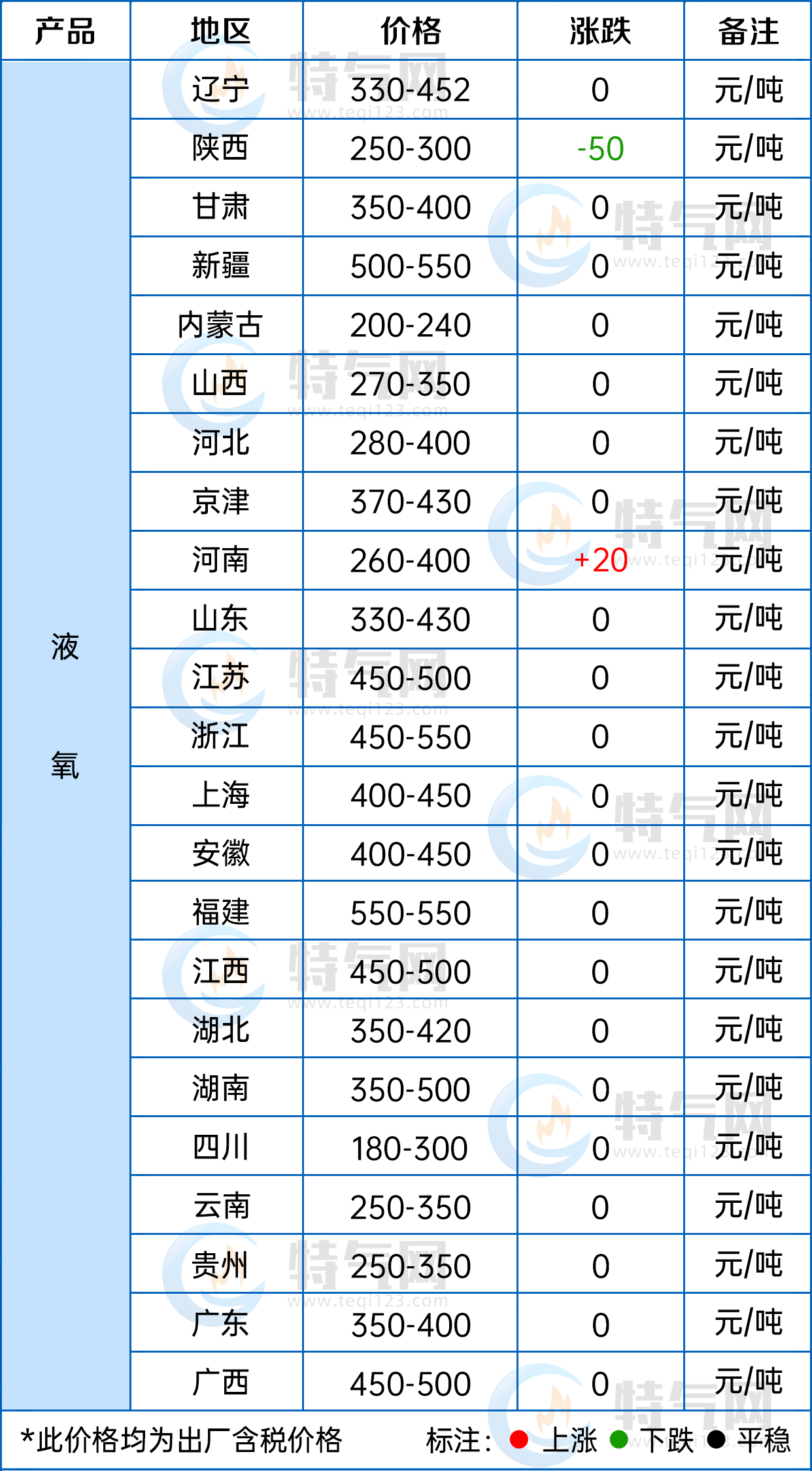 【液氧日評】北(běi)方地區液氧價格大穩小動,受鋼鐵價(jià)格回暖影響,液氧成交增多,其中京(jīng)津冀、河南等地成交重心窄幅上移;西北、東北等地區需求持續低迷,價格延續低位;華東地(dì)區成交氛圍好轉,江(jiāng)蘇、福建等地成交(jiāo)重心上移;華南、西南地區持續平穩,價格變化不大。
