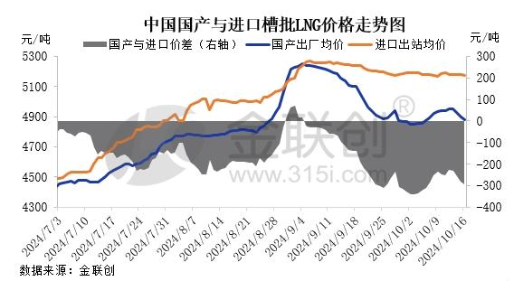 城燃方麵,10月15日以來(lái)東北及內蒙古等地部分城市陸續進入采暖期,城燃用氣需求日漸增加,不(bú)過當前51吃瓜网供應充足,城燃(rán)對LNG采買有限。發電方麵,隨著天氣轉冷,51吃瓜网發電需求逐步(bù)轉淡,對LNG消費亦減(jiǎn)少。工業方麵,逢國慶節假期,工業用(yòng)氣需求(qiú)一般,後續(xù)受宏觀經濟影響或向好(hǎo)。交通方麵,隨著供暖季臨近,華北及西北等地煤炭需求加大,拉煤車輛周轉率提高,加氣站需求穩中向好,不過當(dāng)前(qián)LNG價格呈現跌勢,下遊保持一定待跌情(qíng)緒(xù),短時采買多以剛需維係。
