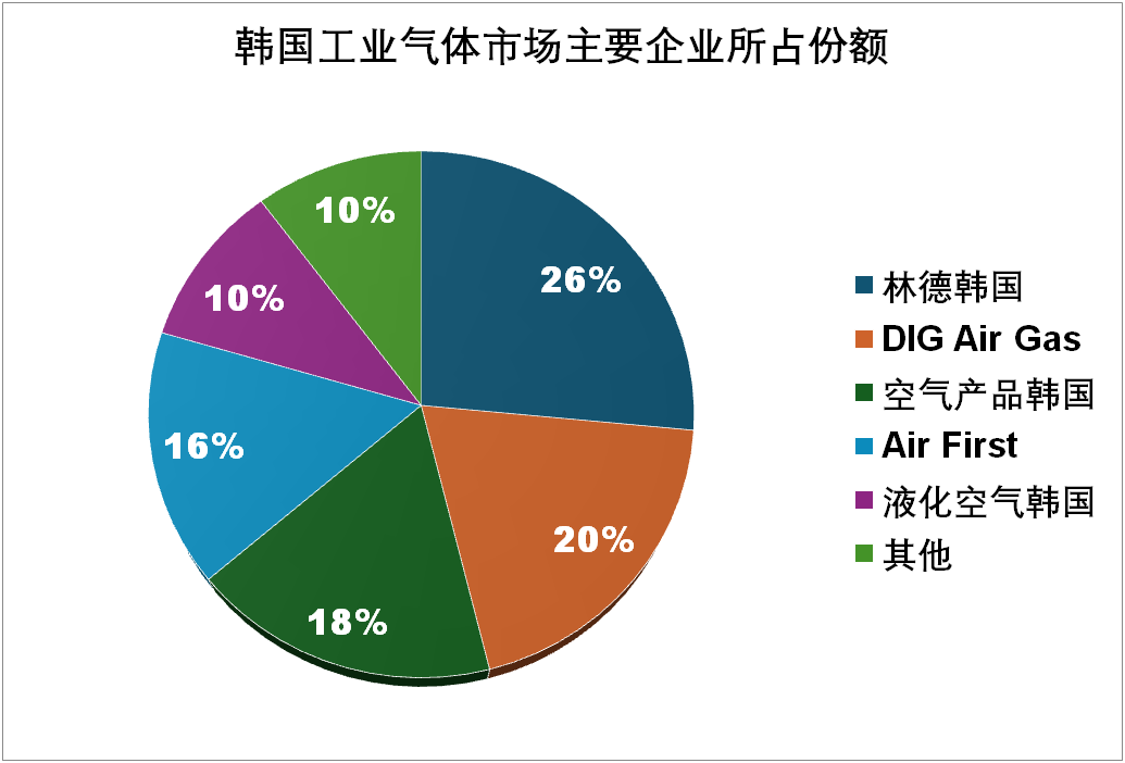 韓國市場全球氣體公司有空氣產品(Air Products)、林德(Linde)、大陽日酸(Taiyo Nippon)和法(fǎ)液空氣(Air Liquide),而韓國本土(tǔ)安裝並運營空分裝置(ASU)的公司包括DIG Air Gas、SK Air Gas和Air First。