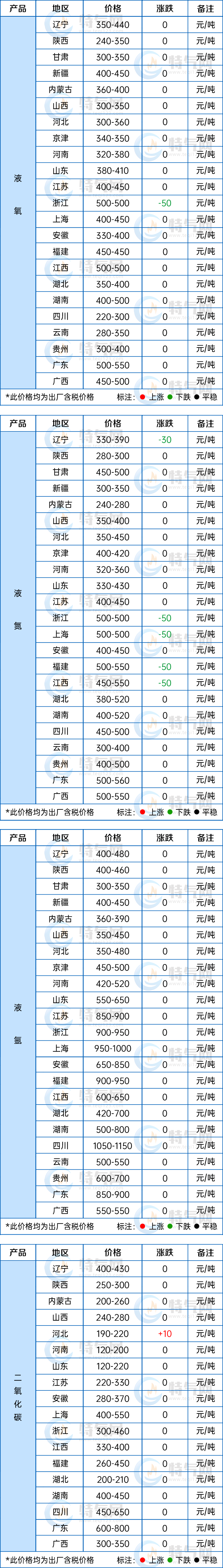 【液氬】液氬市場氛圍(wéi)冷清,價格窄幅(fú)調整。西北地區(qū)光伏企業行情持續不佳,對液氬采購力度下滑,氣體企業(yè)裝(zhuāng)置開工一般,但市場供應充裕,供需矛盾下,價格低(dī)位為主;華東液氬市場變化不大,氣體廠家出貨為主,成交一般;華南(nán)地區成交穩定,氣體廠家庫存降低出貨尚可,價格小(xiǎo)幅調整(zhěng)。
