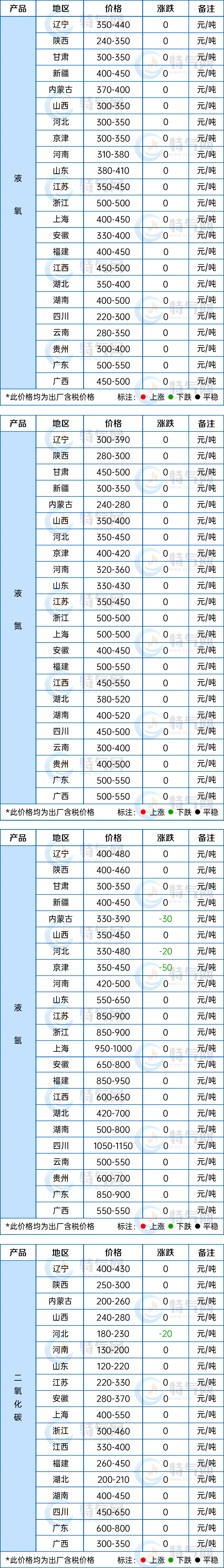 【液氧】今日國內液(yè)氧市(shì)場價格暫穩。華北地區下遊鋼(gāng)廠行情欠佳(jiā),對液氧(yǎng)需求增量不多,氣體廠家排庫為主,價格延續低位;華東地區液氧供(gòng)應充足,終端按需采購,成交有限。
