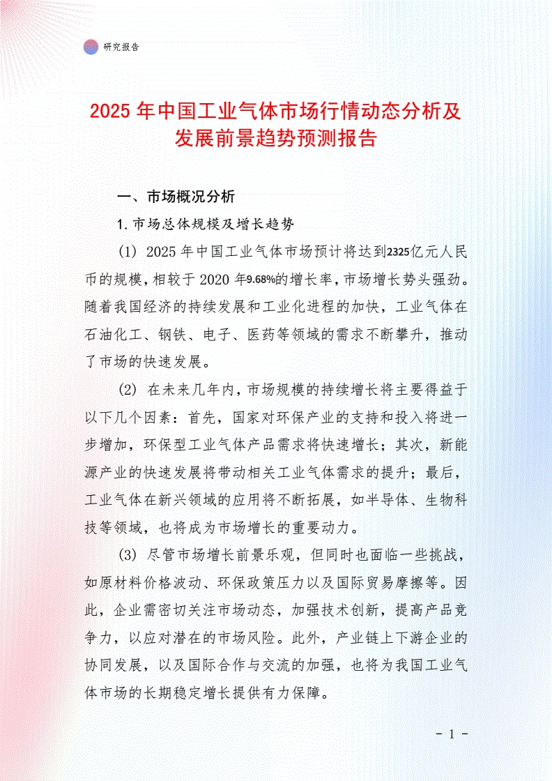 2025年中國工業氣體市場行情動(dòng)態分析及發展前景趨勢預測(cè)報告