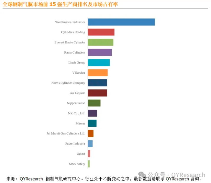 全球鋼製氣瓶市場前15強生產商排名及市(shì)場占有率