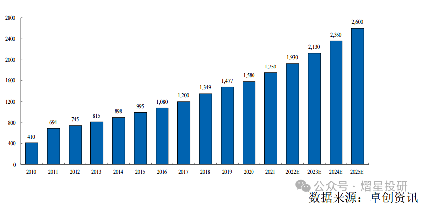據卓創資訊數據(jù)顯(xiǎn)示,工業氣體市場(chǎng)規模由 2017 年(nián)的 1,200 億元(yuán)上升 至 2021 年的 1,750 億元,年均複合增長率達到 10.13%。隨(suí)著我國經濟長期保持穩定增長、產業結構持續優化,在(zài)政策推動與自主創新的引導下,工業氣體主要下遊應用(yòng)領域仍將持續穩定發展,中(zhōng)國(guó)工業氣體行業的未來(lái)發展空間將會越來越廣闊,預計至 2025 年有(yǒu)望達到近 2,600 億元的規模。