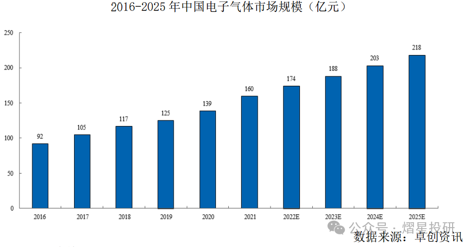 據卓創資訊數據顯示,中國電子氣體市場規模由(yóu) 2016 年的 92 億元增長至 2021 年的(de) 160 億 元,複合年(nián)均增長率達 11.70%。2022 年我國電子氣體市(shì)場規(guī)模預(yù)計達到 174 億元,2022 年(nián)中國電(diàn)子氣體市場規模占工(gōng)業氣體(tǐ)市場總規模的 9.02%,較 2016 年的 8.52%有所上漲。隨著新一代顯示技術、5G、人(rén)工智能、物聯網和自動駕駛等領域的興(xìng)起,中國半導體市場需求(qiú)將逐漸擴大,預計 2023-2025 年將保持穩定增長。