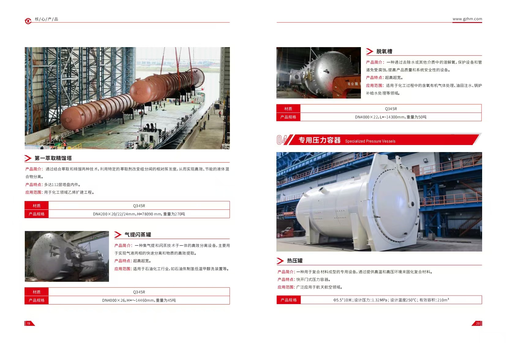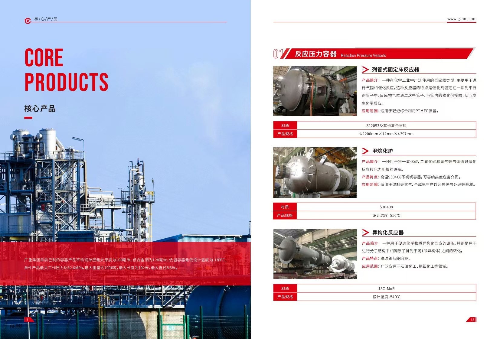 廣重(chóng)集團研製壓力容(róng)器已有六十餘載,設計水平高(gāo)、檢測手段先進(jìn)、生產設施(shī)齊全,為國內外用戶提供了大批難度較大、水平較高的壓力(lì)容器,是(shì)華南地區最大的石油化工設備製造商之一。我司專業(yè)生產製造各類塔器、換熱器、反應釜、球形儲(chǔ)罐、加氫反應器等壓力容器,可定製碳索鋼(gāng)、低合(hé)金高強度鋼、合金鋼、不鏽鋼、鋁、銅、鈦等多種材質,適用於石油煉製、化工、造紙、製藥等領域。