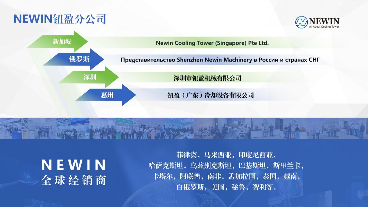 NEWIN鈕盈,專業(yè)的冷(lěng)卻塔製造商(shāng)。二十餘年專注於(yú)冷卻塔技術的開發、研發設計,完善完整的生產體係,目前已擁有完整的產品係列和生產線。此外,為了(le)將(jiāng)尖(jiān)端技術落到實(shí)處,NEWIN已(yǐ)成長為濕式及混(hún)合式冷卻塔的專業製造商。優質(zhì)高效的濕式及(jí)混合式冷卻塔不僅銷往中國,還遠銷東南亞、中東、非洲、俄羅斯及獨聯體國家、北美和南美。