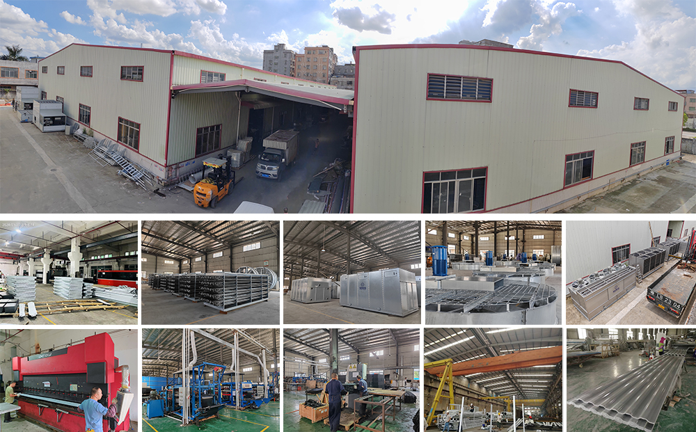 NEWIN鈕(niǔ)盈工廠:工廠位於廣東惠州占地10000平米,已獲得ISO9001質量認證和ISO14001環境管理認證,確立了集生產冷卻塔填料、激(jī)光加工、數控折板加工、焊接加工、整塔組裝以及整塔熱力測試為一體的生產體係,全(quán)麵保障產品(pǐn)的合格生產和交(jiāo)付。