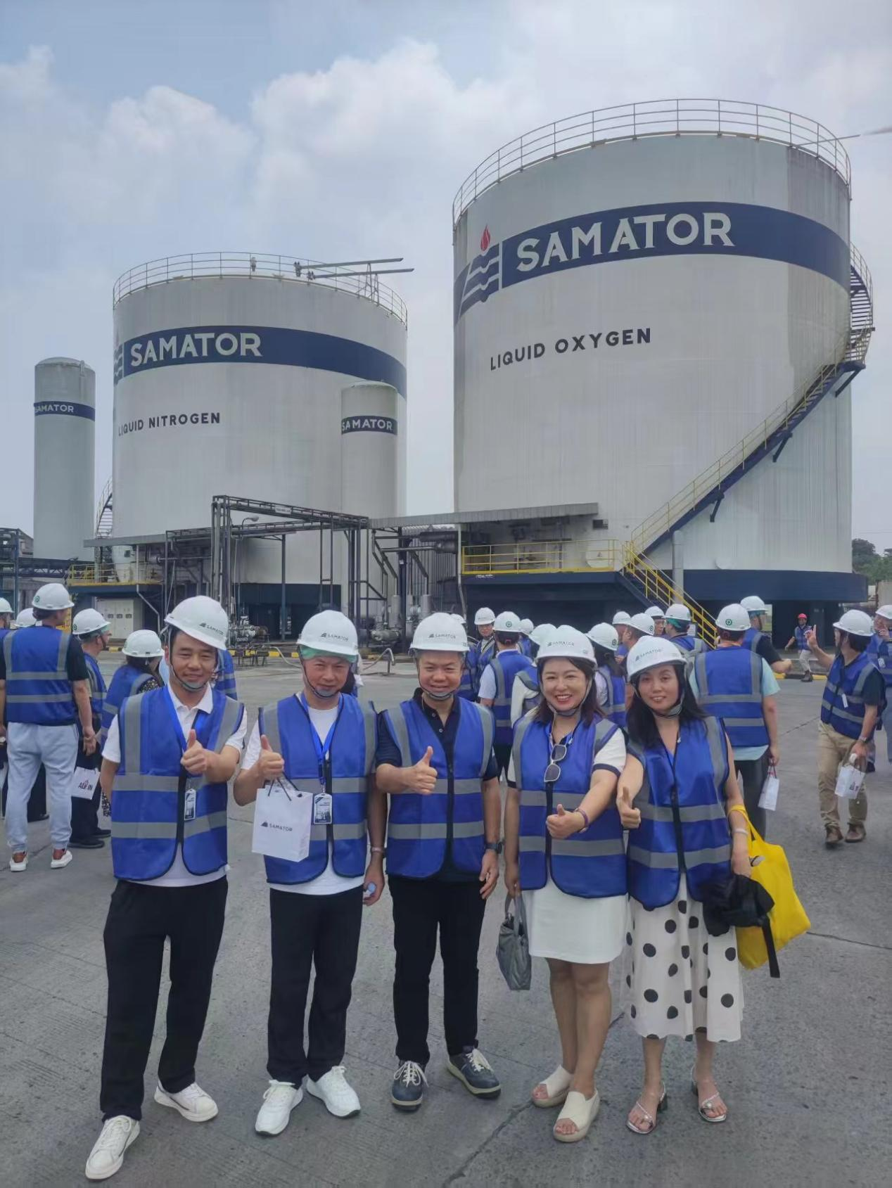 圖示:王瑩(右二)參觀考察印尼最大的工業氣體工廠(chǎng)
