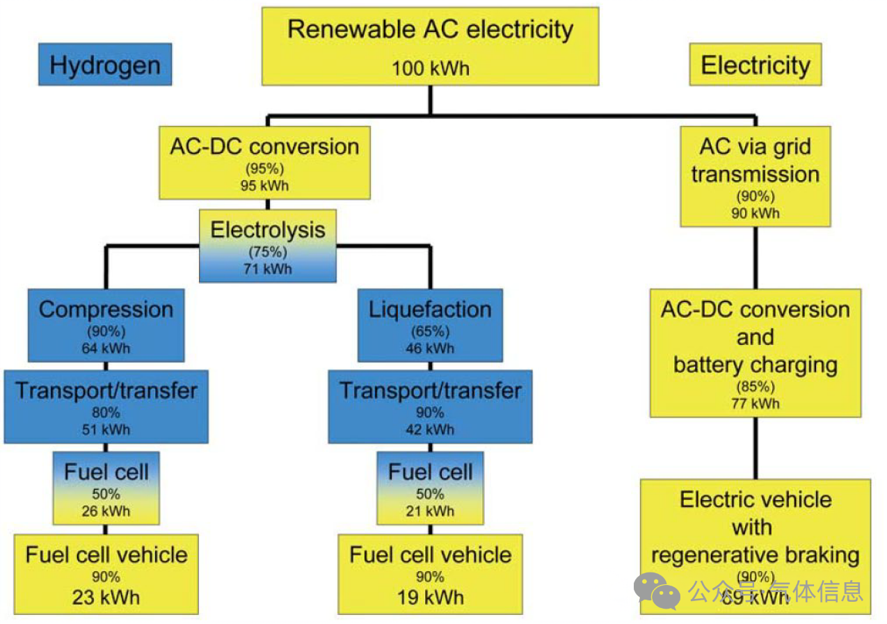 我們先看看從可再生能(néng)源到氫能(néng)適用端的能量轉化全貌: