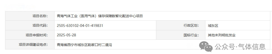 近日,青海氣體工業(醫(yī)用氣(qì)體)儲存保障數智化配送中心項(xiàng)目獲備案。