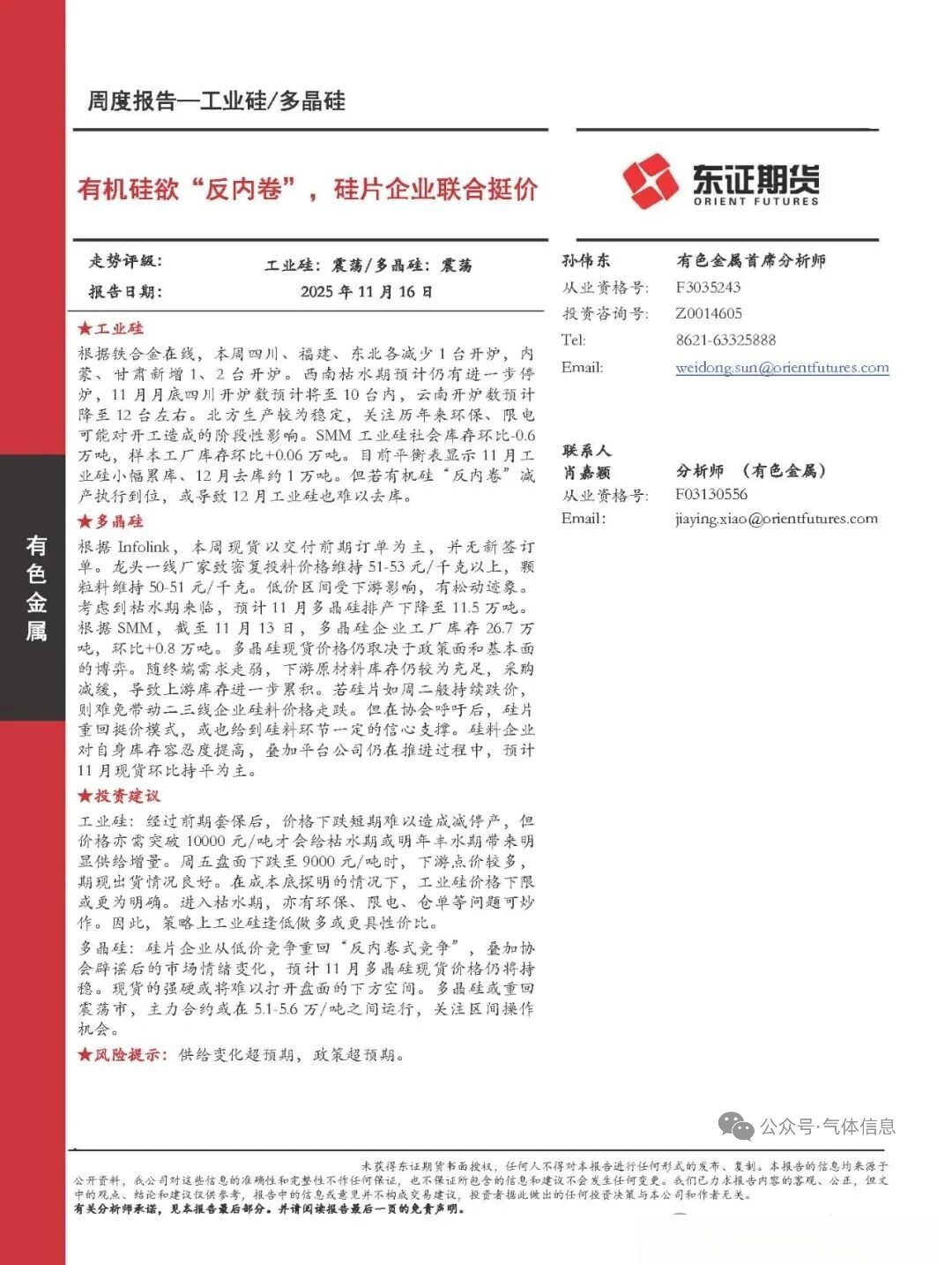 投資建議上,多晶矽主力合(hé)約或(huò)在 5.1-5.6 萬 / 噸區間震蕩,建議關注區間操作機(jī)會;工業矽成本底明確,枯水期疊(dié)加環保、限電等炒作因素,逢低做多更(gèng)具性價比。風險提示主要為供給或政策變化超預期。