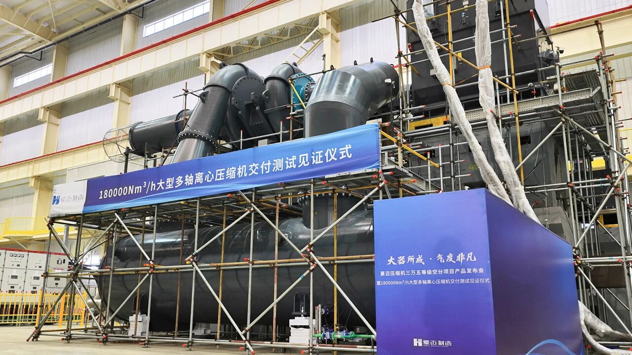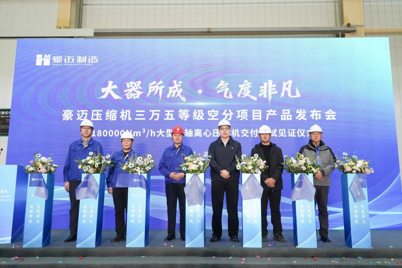 2026年1月8日,在空分氣(qì)體行業同仁與客戶的(de)共同見證下,豪邁壓縮機為某(mǒu)知名冶金企業客戶量身打造的180000Nm³/h大(dà)型多軸離心(xīn)式壓縮機圓(yuán)滿完成測試並正式交付。設備各(gè)項參數與性能指(zhǐ)標表現優異,均超出客戶預期,標誌著國產(chǎn)空分裝備的研發(fā)與製造能(néng)力再上新台階。