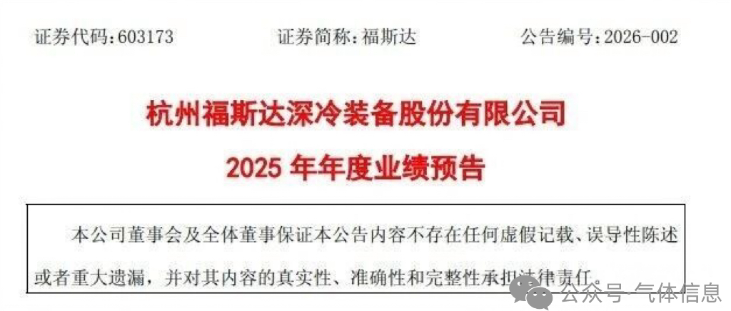 杭州福斯達深冷裝備股份有限(xiàn)公司(以下簡稱“公司”)預計(jì)2025 年年度實(shí)現歸屬於母公司所有者的淨利潤 42,000.00 萬元到50,000.00 萬元,與上年同期(法定披露數據)相比,將增加 15,883.70 萬元到23,883.70 萬元,同比增加 60.82%到 91.45%。