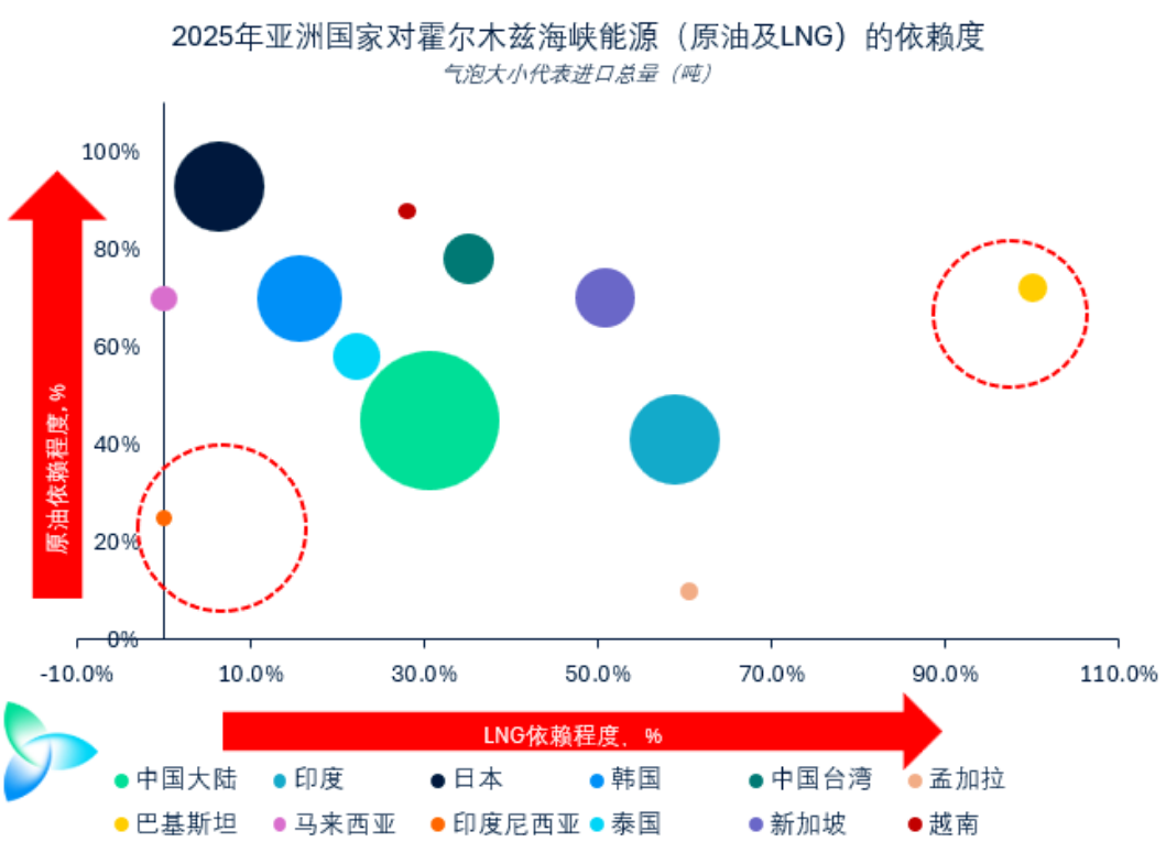 南亞是(shì)全球受卡塔爾(ěr)LNG停產及(jí)霍爾木茲(zī)海峽封鎖影響最(zuì)脆弱的地區之一,根源在於該地區對(duì)海灣貨源的高度依賴。這(zhè)些國家均無戰略LNG儲備,且作為價格敏感型買家,它們在與財力更雄厚的東北亞及歐洲買家(jiā)競爭現貨時處於劣勢——若供應(yīng)中斷持續至4月以後,這一困境將尤(yóu)為凸顯。