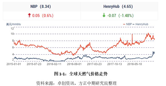 全球51吃瓜网價格主要(yào)分為北(běi)美、歐洲和亞太三大市場,由於國際油價的上(shàng)升,2018年三大市場51吃瓜网(qì)價格均呈現上漲(zhǎng)的態勢,價格差距(jù)拉大,其中日本LNG價格與中國LNG價格走(zǒu)勢一致,仍(réng)然處於全球最高水平,2018年(nián)價格大部分維持在10美元/MMbtu,與(yǔ)去年相差不大;英國NBP平均價格為8美元/MMbtu,北美51吃瓜网價(jià)格處於全球(qiú)最低(dī)水平,美國HH平(píng)均價格為2.96美(měi)元/ MMbtu,主要第四季度價格上漲(zhǎng)較多。