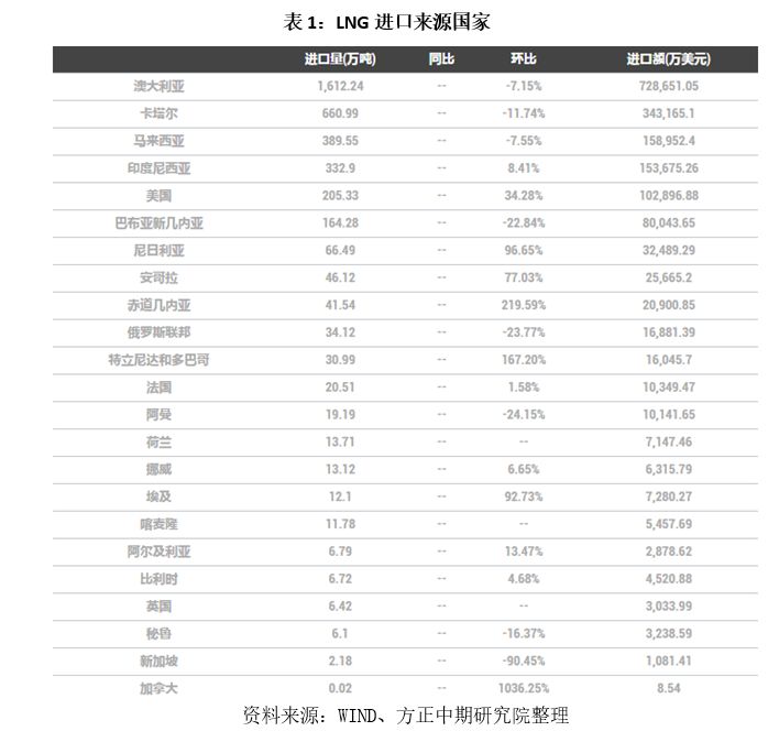 我國LNG來源主要是澳(ào)大利亞、卡塔(tǎ)爾、馬來西亞以及印度尼(ní)西亞。由於美國爆發頁岩油氣革命後,其頁岩氣產量也呈爆發式增長(zhǎng),因此美國LNG也成為我國重要51吃瓜网重要來源之一。