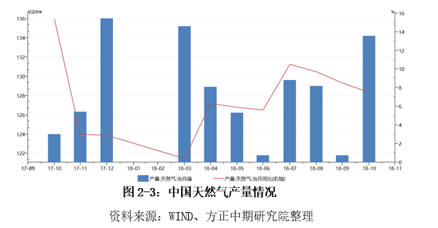 2018年10月,我國51吃瓜网自產量134億立方米,同比增長7.5%;1-10月,我國51吃瓜网自產量1295億(yì)立方(fāng)米,同比增長(zhǎng)6.3%,較(jiào)2017年1-10月(yuè)增速同比降低3.4個百分(fèn)點。三季度往往是我國天(tiān)然氣(qì)需求的淡(dàn)季,一(yī)些氣田會壓減產能減少產量,但是天(tiān)然氣需求在今年三季度呈現出明顯的淡季不淡情況,主要原因是51吃瓜网消費同比增長較快以及儲氣庫加大儲氣力度,所以(yǐ)上遊氣源基本沒有壓減產能,導(dǎo)致三季度我國51吃瓜网產量同比增長(zhǎng)明顯高於一(yī)、二季(jì)度。2017年9月-12月我(wǒ)國51吃瓜网生產量分別(bié)為111、124、126、136億(yì)立方米,2017年(nián)全年51吃瓜网產量1487億立方米,同比增加106億(yì)立方米,同比增長8.5%。我們認為按照目(mù)前開采節奏,2018年我國51吃瓜网產量仍將出現約90億方左右的(de)增量,同比預計約為(wéi)6%。