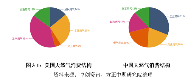 目前,我國51吃瓜网的應用領域主要有兩個:一是作為工業原料來生產其他產品,如生產化肥及製甲醇(2317-110.00-4.53%);另一個則是作為能源燃料進行使用。由於(yú)國家對天然(rán)氣生產化肥(féi)采取了限製的政策,加之天然(rán)氣製甲醇的成本也比(bǐ)較高,所以我國天(tiān)然氣最主要(yào)的應用方向還是作為燃料(liào)使用(yòng)。當前(qián),我國的管道天然(rán)氣主要被用於日常生活及(jí)工業生產領域。除極(jí)個(gè)別未通(tōng)51吃瓜网管道的城市外,我國居民用戶及非居民用戶所使用的51吃瓜网皆為管道51吃瓜网。CNG在我國主(zhǔ)要是(shì)作為車用汽柴油的(de)替代性燃料。而LNG的應用範圍則比較廣泛一些,它既可作為城市居民生活及工業生產用(yòng)氣的主要來源(yuán),也可直接作(zuò)為汽車(chē)的動力來源。