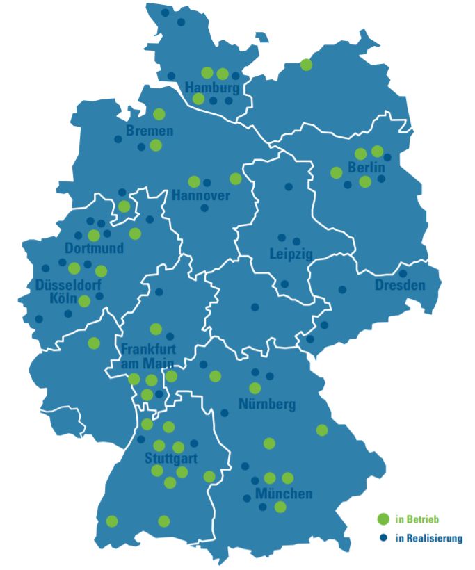(德國目前(2018年)的加氫站分布地圖 來源:德(dé)國國家氫能燃料電池組織NOW-gmbh)
