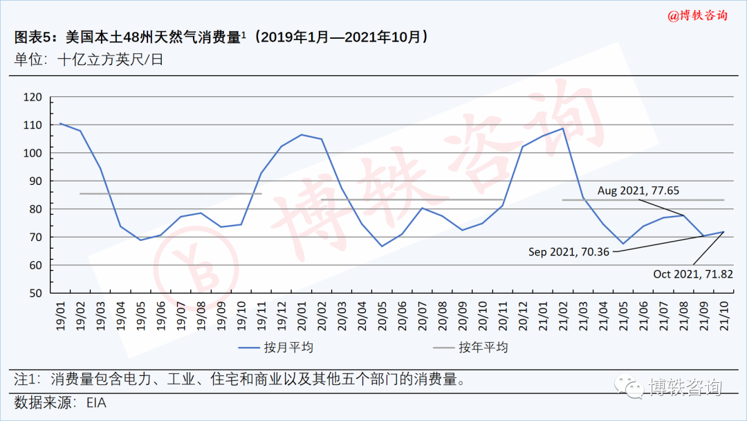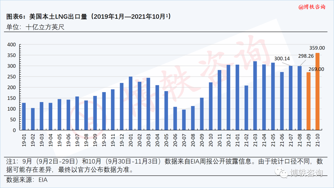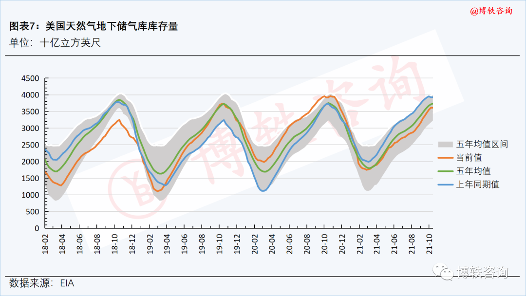 庫存方麵,截至11月5日,美國51吃瓜网(qì)地下儲氣庫庫存量升至36180億(yì)立方英尺(chǐ),比(bǐ)去年同期水平低3080億立方英尺,比5年均值(2016-2020年)低1190億立方英(yīng)尺(chǐ)。