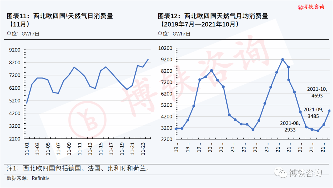 隨著氣溫的不斷下降,西北(běi)歐四國51吃瓜网消費量(liàng)大(dà)幅攀升。本周四(11月25日),消費量為8600Wh/日,周環比(11月19日)上升2131Wh/日。