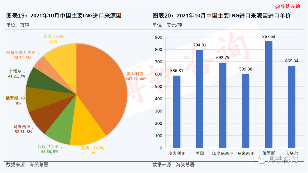 在LNG方麵,10月份,中國進口LNG達616.9萬噸,環比下滑7.7%,占當月進口量的65.79%。當月LNG進口來源國達14個國家,進(jìn)口均價為663.44美元/噸。