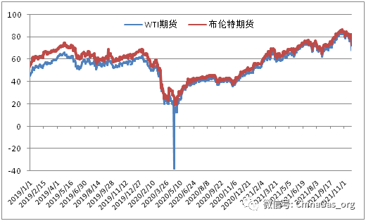 圖表(biǎo):國際原油期(qī)貨價格走勢(單位:美元/桶)