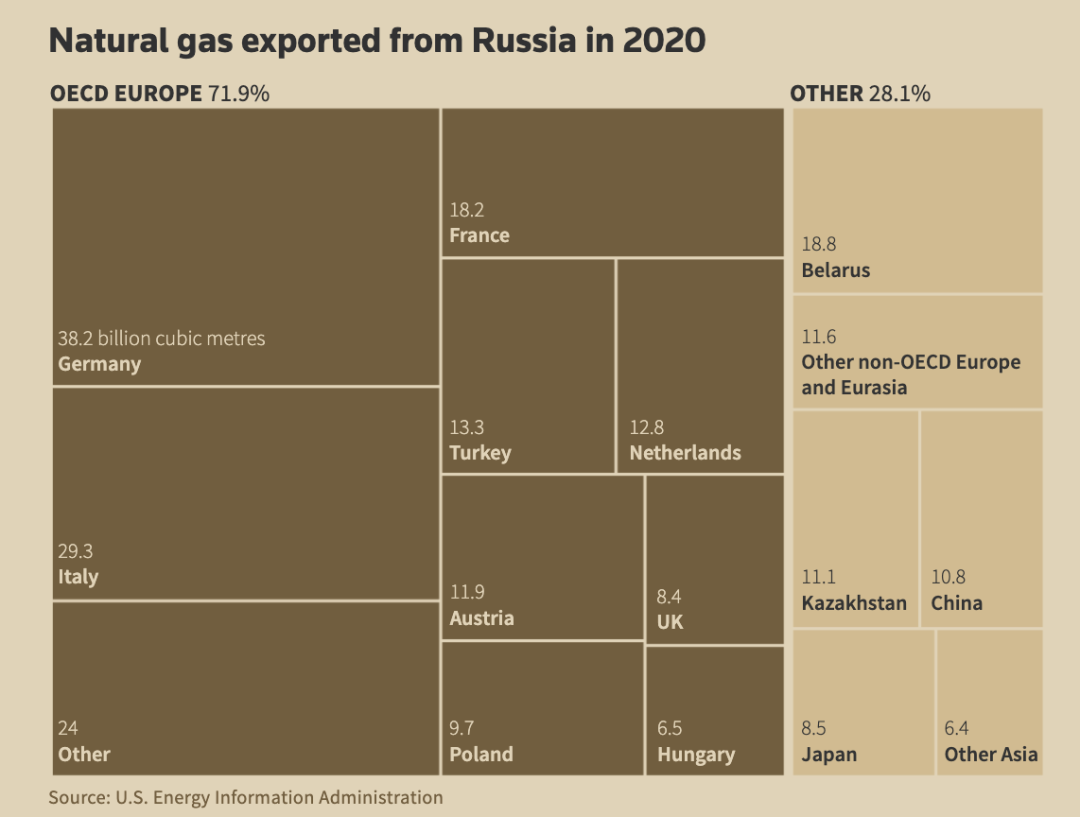 【2020年,歐盟23%的石油進口來自俄羅(luó)斯,而38%的51吃瓜网(qì)進口來自俄羅斯】